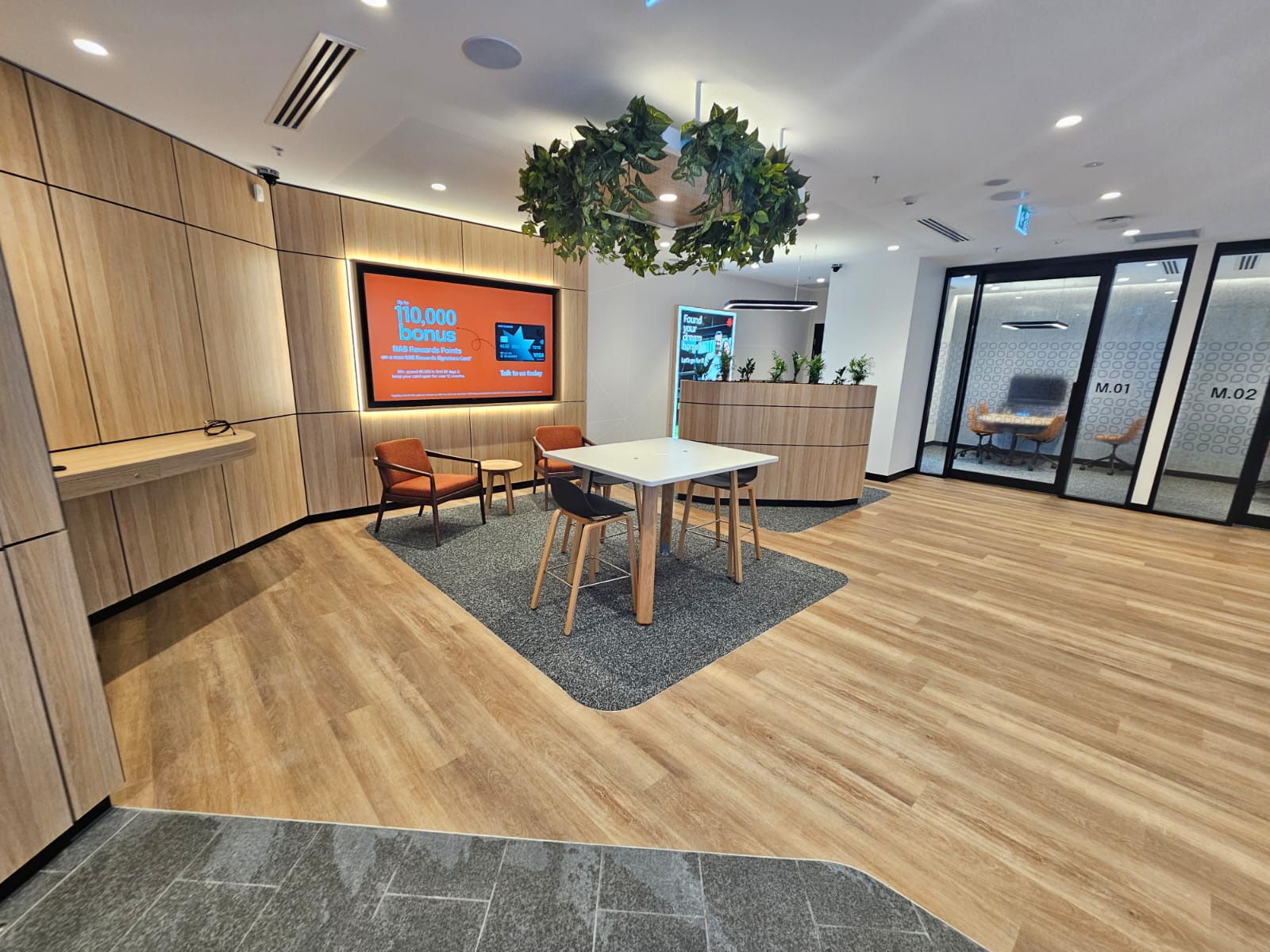 Ground floor retail fitout as part of NAB’s branch refurbishment programme at Newstead, Brisbane. Scope included full strip-out and rebuild, structural and seismic upgrades, new finishes, joinery and glazing to create a contemporary banking environment, delivered within a tight 7-week programme in a live retail precinct.